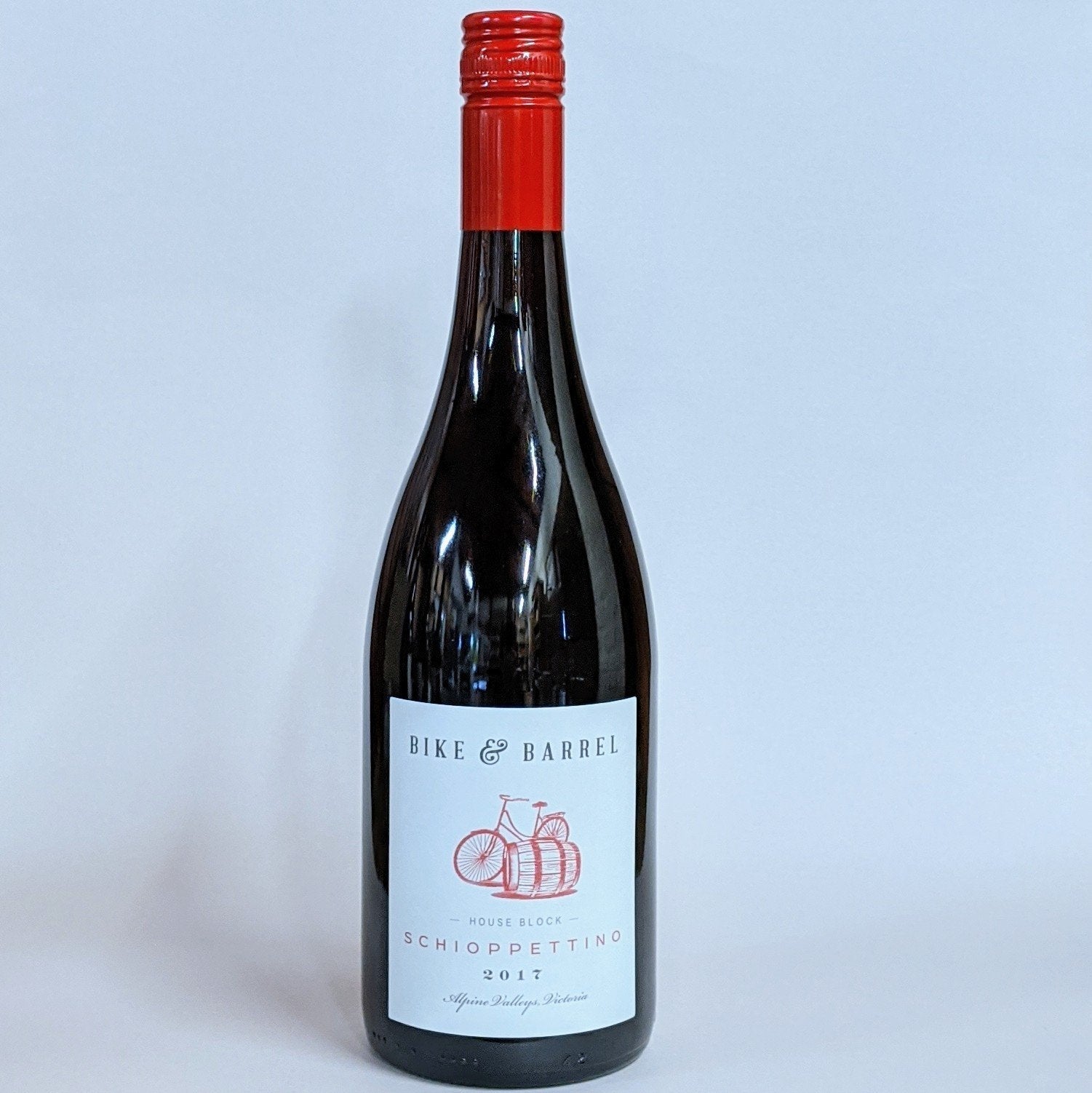 Grown predominantly in the Northeast of Italy and Slovenia, family owned and run Bike & Barrel is one of the few producers in Australia. Bike & Barrel Schioppettino has tart red fruit flavour, with the aroma of pepper. It is fresh, juicy with high but fine tannin, medium body and medium alcohol. A wine which is imminently drinkable.