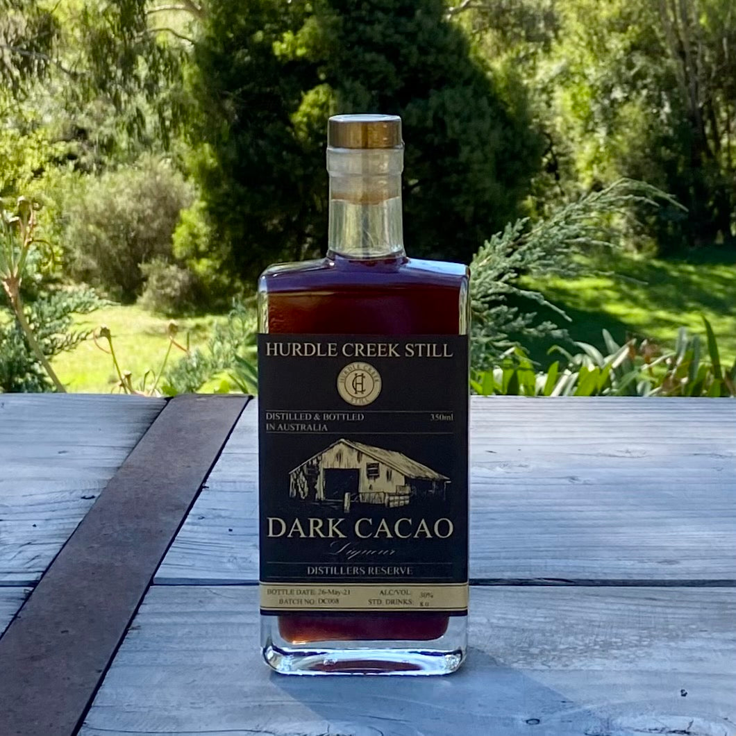 A rich dark chocolate flavoured liqueur made with organic cacao nibs, vanilla and just a little sweetness. Hand made at the Hurdle Creek Still on the family property in the King Valley.