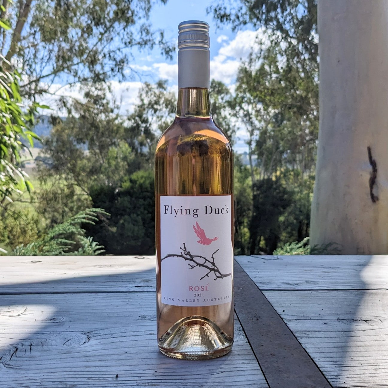 The King River Estate Flying Duck Rosé is a stunning Rosé reminiscent of a true Provencale style, with excellent soft sweetness on the nose and a hint of fruit sweetness at the front of the palate, finishing with a mellow dryness, a hint of strawberries and rose petal. With a hidden complexity, this is a best selling wine from King River Estate Flying Duck and one that they are rightly proud of.